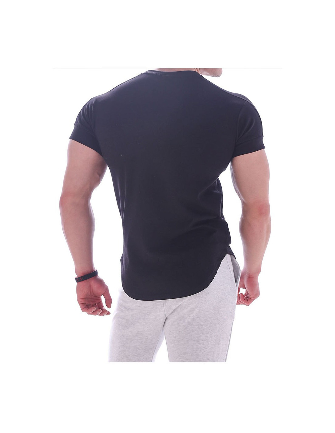 - нижняя часть футболки стильно закруглён;
